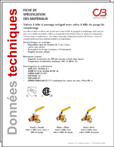 Valves à bille à passage intégral avec valve à bille de purge/de remplissage