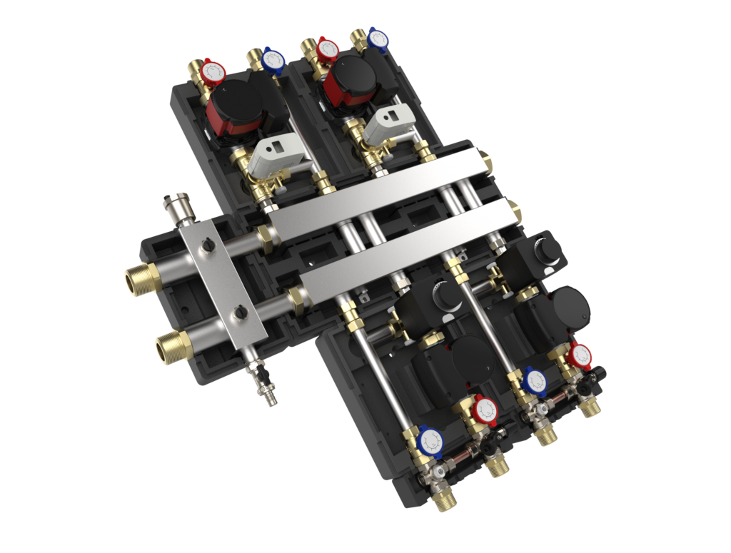 - ◦ 1″ and 1 ¼” headers with 2 to 12 loops, ideal for standard flow applications