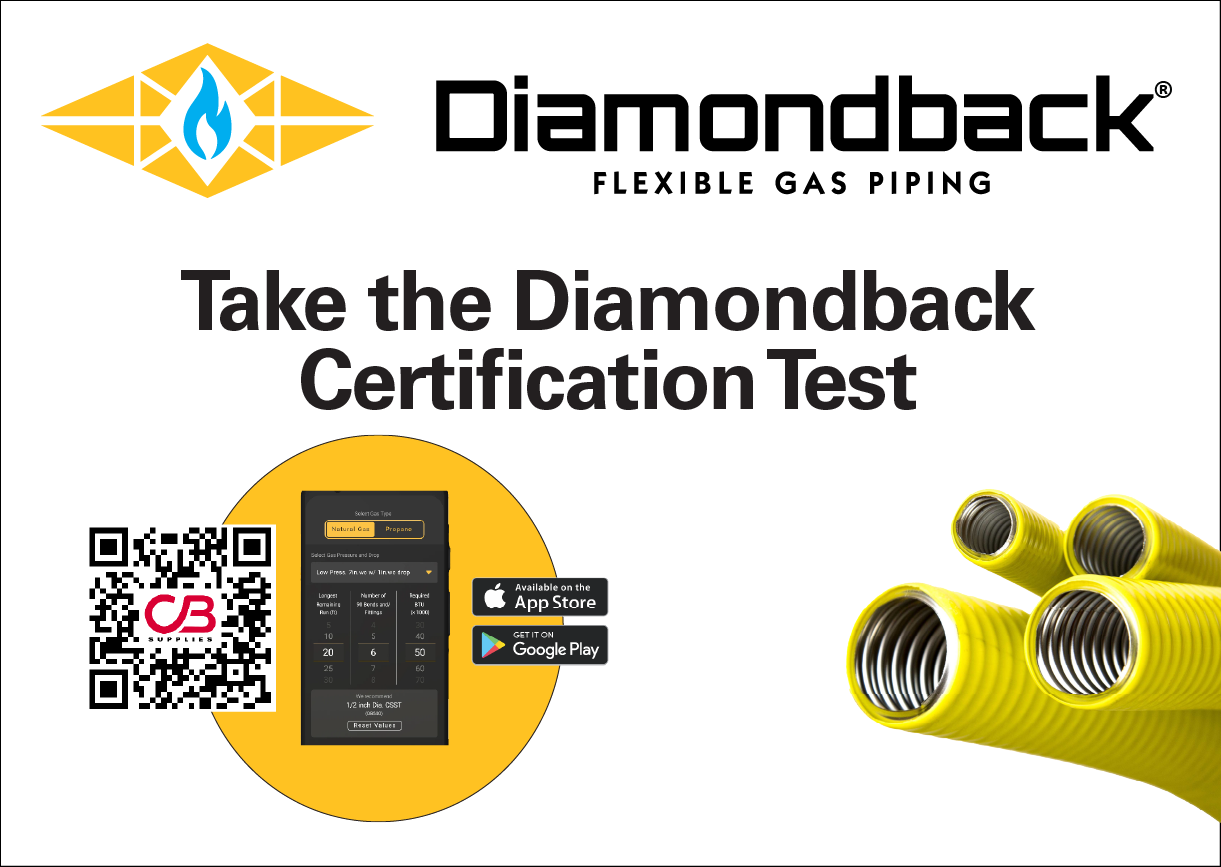 Introducing an online certification for CSST installers. This remote training test is offered to individuals seeking certification for installing Diamondback CSST flexible gas piping.CB Supplies News