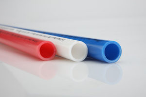 Cross-linking is completed with hot water or steam (sauna). The advanced formulation ensures that when the product is exposed to UV radiation, it will retain both its physical properties, as well as its long-term Chlorine/ORP resistance at the highest level in the industry today. The single-layer product is provided in the colors red, white, and blue for easy identification of hot and cold lines.